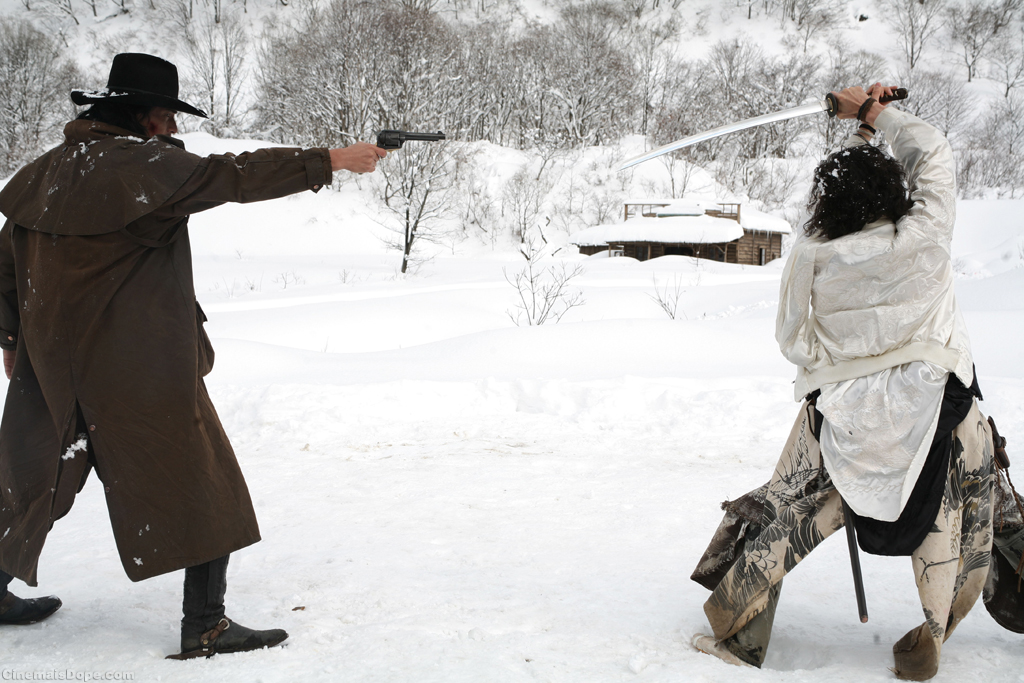Japanese star Koichi Sato’s comment on the experience was: “I realize now how effortlessly I’ve been making money all these years.” The actors not only had lessons in English but were required to learn horseback riding and gun slinging. The actress Kaori Momoi also had the additional challenge of working with flying wires and trampolines as the legendary fighter “Bloody Benten.” At one point her whole body was wrapped in plastic to protect her from the cold, which made even a simple somersault a challenging feat.