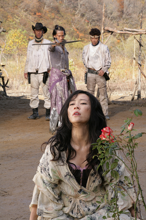 Gun smoke drifts in the air and the haunting sound of melodic whistling echoes as you step into a world that transcends time and space, a world where the Japanese shukuba-machi (post station) and western saloons co-exist. From the familiar scenes of spaghetti westerns, to elements from Tales of The Heike, the War of the Roses and the legendary goddess of murder “The Bloody Benten,” anything goes in the Miike world. The climactic scene even extends a nod to the world of the classic western film, Shane (1953). However, this film is by no means a parody. What emerges from the sukiyaki pot, in which all of these ingredients simmer together, is Miike’s magnificent view of the world.