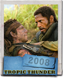 Tugg Speedman (Ben Stiller, left) and Kirk Lazarus (Robert Downey Jr., right) are shooting an epic war movie and wind up in a real battle in the action comedy “Tropic Thunder.” DreamWorks Pictures Presents A Red Hour Production A Ben Stiller Film “Tropic Thunder” starring Ben Stiller, Jack Black, Robert Downey Jr., Steve Coogan, Jay Baruchel, Danny McBride, Brandon T. Jackson, Bill Hader and Nick Nolte. The film is directed by Ben Stiller from a screenplay by Justin Theroux & Ben Stiller and Etan Cohen. The story is by Ben Stiller & Justin Theroux. The film is produced by Stuart Cornfeld, Ben Stiller and Eric McLeod. The executive producer is Justin Theroux. The music is by Theodore Shapiro. The music supervisor is George Drakoulias. This film has been rated R for pervasive language including sexual references, violent content and drug material.