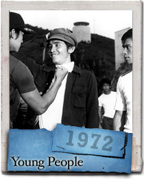 Ti Lung shakes a fist at a smiling David Chiang as Chen Kuan Tai looks on in Chang Cheh’s “Young People” aka “Nian qing ren.”